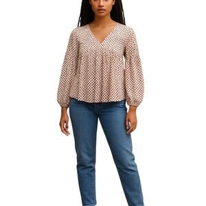 GAP Y2K V Neck Swing Blouse White with Small Floral Pattern Overall size XS
