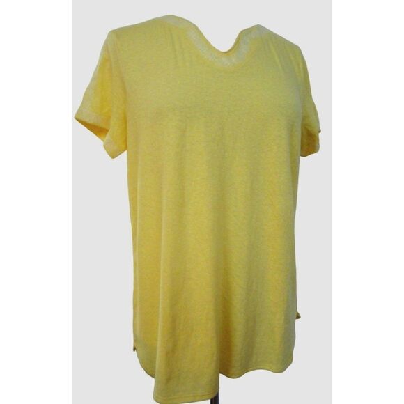 GAP Yellow V-Neck Embroidered Tee Top Cap Sleeve Side Slits Cotton Sz M NEW