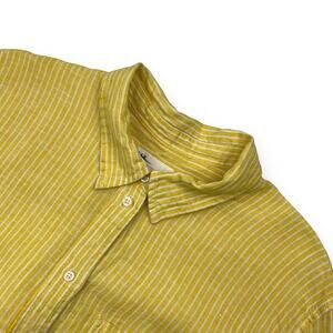 GAP Yellow White Striped 100% Linen Long Sleeve Button Up Shirt