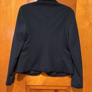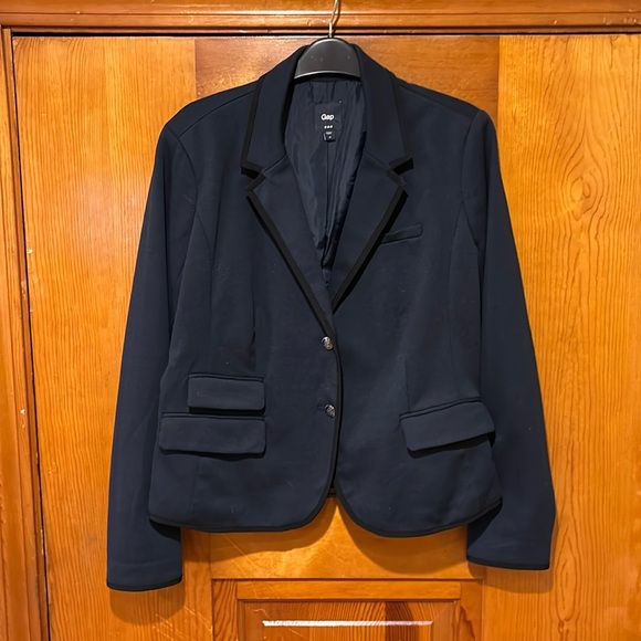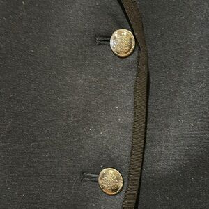 Navy with black trim and silver buttons. Nice quality and in great shape.