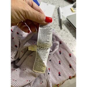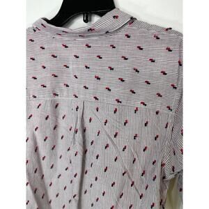 GAP shirt blouse button down up women’s size medium violet purple white stripe with red and contrasting “tufts”