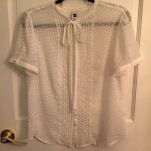 📊PLEASE CHECK OUT MY OFFER CHART 📊 GAP white button down shirt sleeve blouse with collar tie. Light and sheer. Excellent condition.