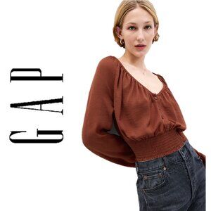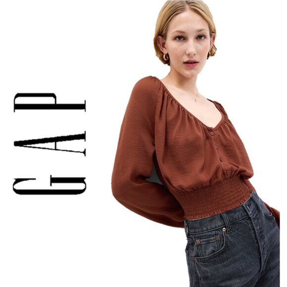 GAP copper brown button-front smocked hem top (L) - NWOT