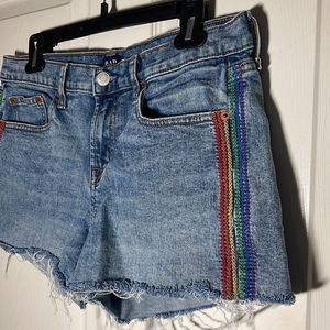 GAP cut offs jean shorts with rainbow embroidery size 28