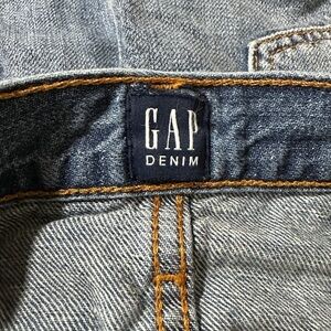 GAP distressed raw hem denim jean skirt, sz 27 waist flat 14.5", length 16", good used condition