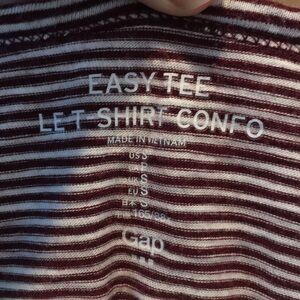 Long sleeve GAP easy tee burgundy and white stripes tie bottom size small