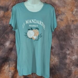 GAP favorite tee in ocean/teal/turquoise/blue color with peach/orange & white graphic, size XL.