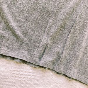Loose fit around the waist area with fitted sleeves. Scoop neckline. 100% rayon. Comfortable and relaxed. Teeny tiny hole in the front near the bottom - shown in pictures.