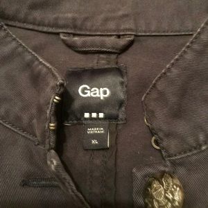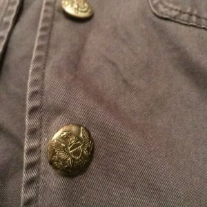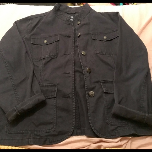 A dark navy blue/black button sweater. Similar to jean material and fits perfectly!