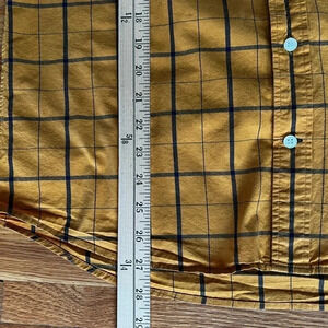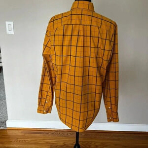 GAP Men’s button down shirt, size medium. Mustard yellow with blue accent plaid. In excellent condition, 100% cotton.