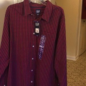 New from GAP, men’s casual dress shirt cotton poplin shirt size XXL. Dark red/black check. 46-48 inch chest. Nice.