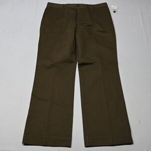 Comfortable olive green barrel leg twill pants with elastic waist. Perfect for casual wear.