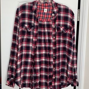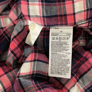 GAP pink, navy blue, white plaid flannel button down shirt women’s size Medium. Worn maybe twice. Excellent condition. Like new.