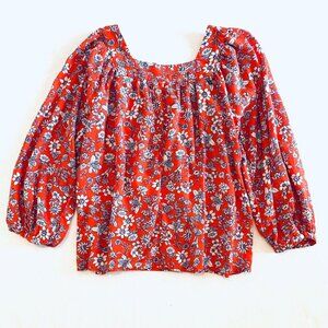 GAP red floral square neck blouse Womens Medium boho festival lightweight