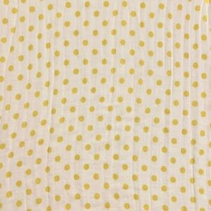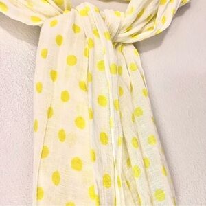 White scarf with yellow polka dots. Sheer and lightweight for all seasons. 27” wide by 80” long. I cut the tag off but it is from the GAP. So cute and cheery looking!😄