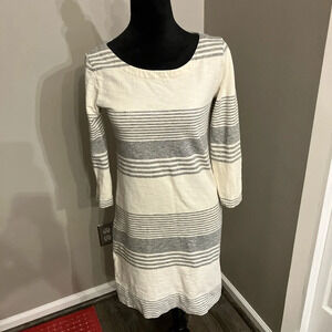 GAP small off white and grey striped dress with 3/4 sleeve.