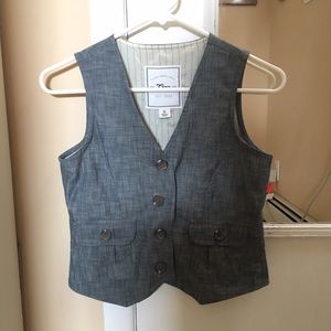 GAP chambray denim look button down vest. Never worn new with tags size kids/juniors extra large 12. I wear an extra small and can fit into it.