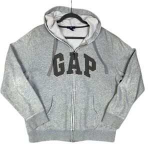 GAP vintage full zip hoodie neutral gray embroidered spell out L y2k
