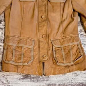 GAP vintage limited edition Stylish Tan Leather zip up Jacket Women’s Size small