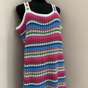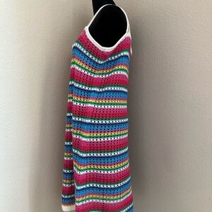 GAP vintage Multi Color Horizontal Stripe Crochet Mini Dress Sleeveless Sz M, Boho