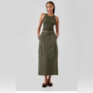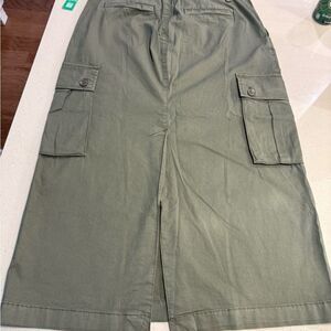 This stylish green cargo skirt is perfect for casual outings. Featuring multiple pockets for convenience, they offer both comfort and functionality. Ideal for everyday wear.