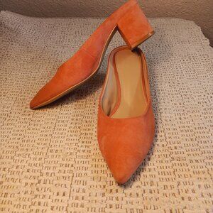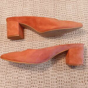 GAP women's blush pink suede leather pointed toe block heel mules sz 9. Pre-owned.