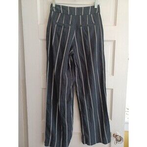 GAP women's wide leg linen blend pant 00 black white stripe coastal work/play