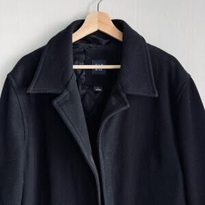 GAP wool blend mens pea coat black size medium quilted lining, front pockets