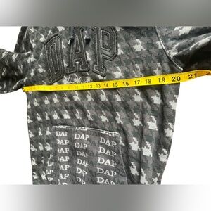 Standout style from the GAP x DAP Dapper Dan collaboration. This hoodie comes in classic black with an allover tonal houndstooth print and bold DAP Harlem logo across the chest. Designed with a drawstring hood, front kangaroo pocket, and ribbed trim for comfort. A rare and collectible piece from the limited-edition collab, perfect for streetwear fans.