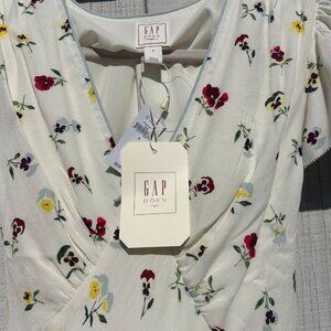 GAP x Doen Cream White Floral Midi Dress Cap Sleeves V Neck Size 8