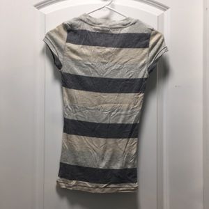 GAP striped neutral gray beige cream V-neck. Sized XS. Fits like an XXS