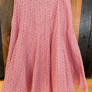 GAP 100% cotton lined circle style full skirt, abstract flower design, size 0. Hidden side zipper with hook and eye closure. Pink/ green flower design. Approximate measurements are waist flat 14” , length from waist approximately 25.5”.