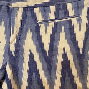 In excellent condition Size 10 Waist 17” Inseam 3” Size 10 100% cotton Blue and white print
