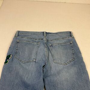 GAP Best Girlfriend Cropped Jeans Blue Embroidered Frayed Torn High Rise Size 28