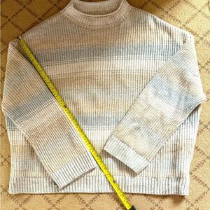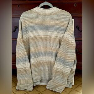 GAP CashSoft Oversized Striped Funnel Sweater L. Long sleeved with gradient soft striped in blues and browns. Excellent condition with no rips stains or tears. Worn maybe once. The size is cut off the main hang tab, however the size is listed on the care tag.