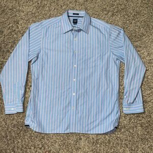 Tags: GAP, powder blue, light blue, pale blue, light pink, striped, long sleeves, sleeve, sleeved, longsleeved, button down, mens, classic fit, casual buttondown, interview shirt, business professional, work outfit, attire, like Loft, like J. Crew, like Jcrew, like Calvin Klein, like Banana Republic, like RVCA, like Penguin, like Hollister, like Abercrombie & Fitch, dress shirts.