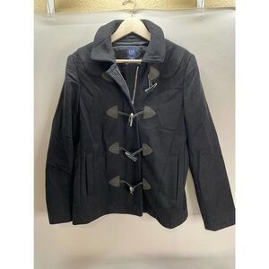 GAP Coat Womens S Black Toggle Front Wool Blend Classic Pea Fishermen Jacket M