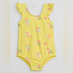 GAPFactory Bright Yellow One Piece Flutter Swimsuit Floral Parrot Print Size 5T