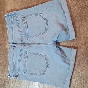 These GAP jean shorts feature a classic blue hue and a raw, cut-off hem for a laid-back, vintage-inspired look. The medium-length design offers a relaxed fit, perfect for casual outings.