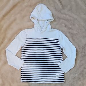 GAP KIDS WHITE WITH NAVY BLUE STRIPES LIGHTWEIGHT HOODIE, SIZE 8