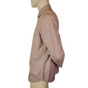 White and light purple colors, striped pattern, collared, long sleeves, cuffed, button down, regular fit, lightweight, breathable and very comfortable. Great condition!