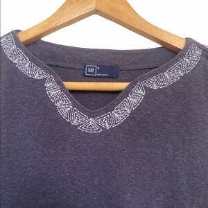 GAP Short Sleeve Blueish gray w White Embroidery on neck and sleeves. Small