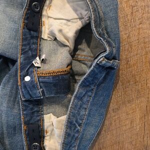 These GAP jean shorts feature a classic medium blue wash with a stylish frayed hem, offering a relaxed and casual look. Made from quality denim, they are perfect for everyday wear and pair effortlessly with any top.