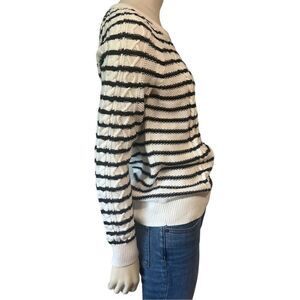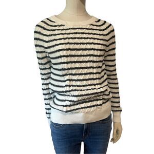 GAP Size S White and Black Striped Crewneck Crew Neck Cableknit Sweater