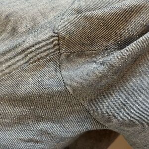 Featuring zip fly with front clasp and button closure, belt loops, two side pockets and two back slit pockets. Great preworn condition with some minor wear noted to the material perhaps and some pilling to in between thighs/crotch area.
