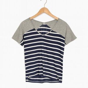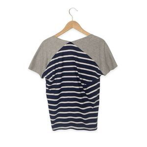 GAP Striped V-Neck Tee Shirt Women’s XS Navy White with Grey Contrast Sleeves