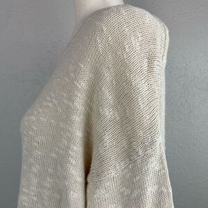 Beautiful and classic sweater by gap featuring an ivory/creamed color. It is an excellent preowned condition and measures 23 inches armpit to armpit laying flat and is 25 inches in length from the shoulder to the hem.