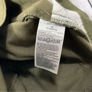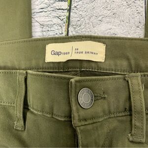 Woman’s GAP True Skinny army green skinny jeans with zipper pockets and bottom back leg zippers. EUC Size 26