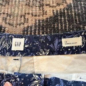 GAP Women's 12 navy floral stretch mid rise flat front zip up Summer sho…