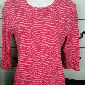 Cute GAP brand pullover shirt. Size Large. Great condition. Shades of pink with three quarter inch sleeves. Laying flat this measures 18 across from armpit to armpit.